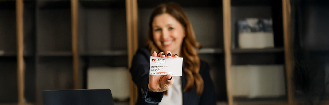 Les avocats du cabinet Pichette, Cvitkovic Avocats de Saint-Jérôme sont spécialisés dans différents domaines du droit. Nous sommes donc en mesure de vous apporter toute l'aide dont vous avez besoin, peu importe la situation dans laquelle vous vous trouvez. Pour en savoir plus sur nos services, contactez-nous par téléphone ou en utilisant le formulaire se trouvant sur cette page.